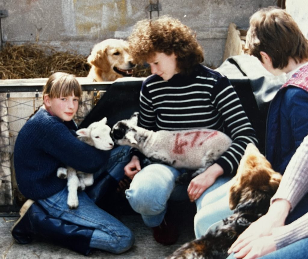 Mum & Daughter with sock lambs mid 80’s, Near Battle, Sussex.