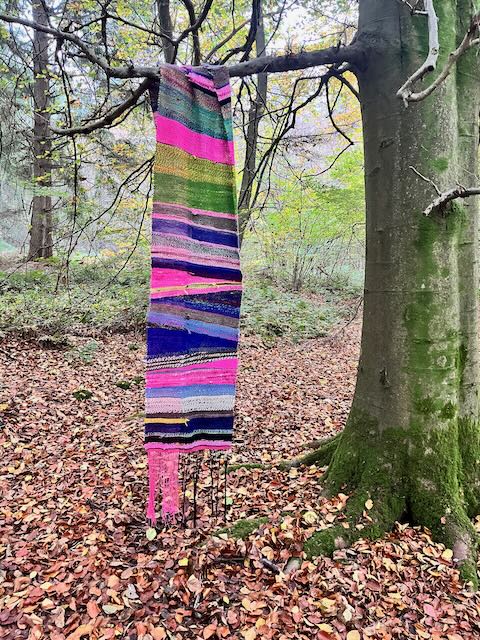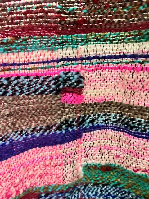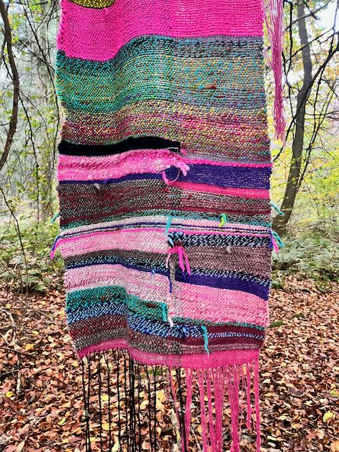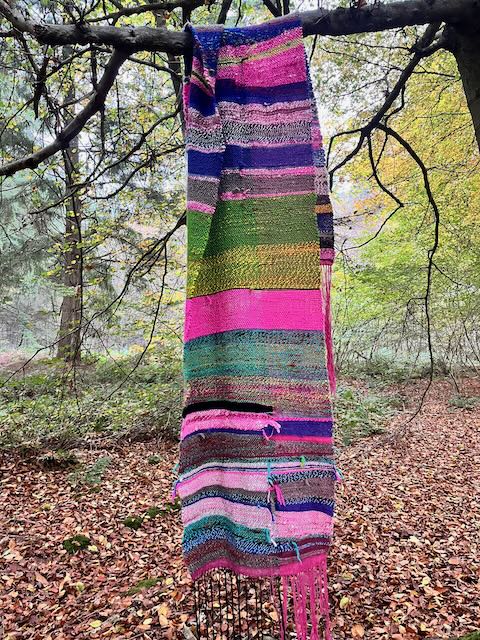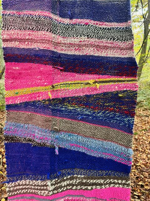 This shawl is made with lots of different colours and textures. It has a wool warp, and is made from hand spun wool and other soft fibres. Including Merino, Blue Face Leicester, Romney and Shetland sheep, as well as little sections of sari silk and more. I started weaving this at Faversham Makers Market on the first week of November. Winter is fast approaching and I am enjoying all those sparks of colour, from lanterns, fireworks and more.