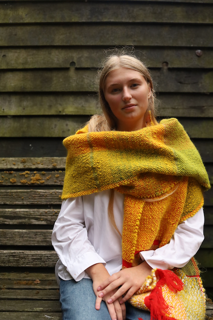 Drapey warm shawls full of colour and texture made to comfort and bring joy. These shawls take around a week to make, from spinning to finished weaving. They can take longer if they are hand dyed too. Commissions for particular colourways can be undertaken.